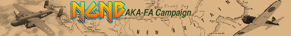Due to the huge success of the map created by Chris "Thrud" Duffel, a newer version of the campaign was flown, using the same map but with more modern aircraft, typical of the forces present in this area during that period of time during WWII. AKA_Wardogs, Forgotten Angels and Friends flew a virtual version of the 1944 New Guinea - New Britain Campaign during August 2011 to October 2011. The squadrons flew 10 missions on each side for a total of 20 missions during this campaign, flying the first 10 on one side (the Axis (Japanese) blue forces or as Allied (US) red forces) then switched sides and re-flew the campaign again. The following pilots contributed to the campaign for the AKA_Wardogs and Friends. Their stats are posted to show the results. We appreciate the contributions made by these virtual pilots, whose wish is to honor and pay tribute to all of the real pilots who fought and gave their lives for both sides in the New Guinea - New Britain campaigns during World War II. They should never be forgotten!